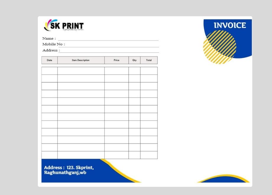 • Material: 60 GSM White invoice, with pink and yellow colour copies